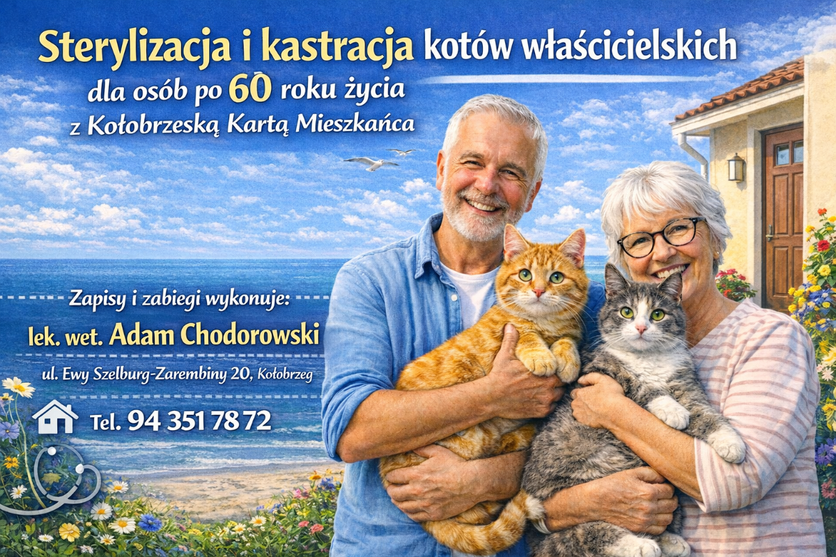 Zadbajmy wspólnie o zdrowie naszych czworonożnych przyjaciół. Sterylizacja i kastracja to odpowiedzialny krok każdego właściciela, a dzięki wsparciu miasta - całkowicie bezpłatny dla seniorów z Kołobrzeską Kartą Mieszkańca.