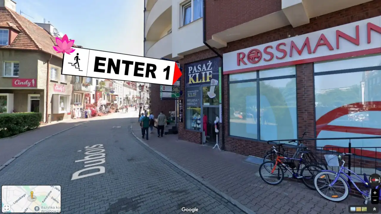 oznacza Twoją lokalizację. Kliknij prawym przyciskiem na mapie, aby ją zmienić.