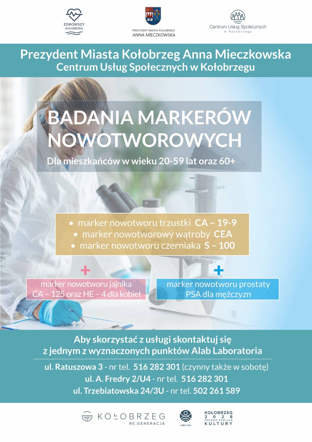 1) Alab laboratorium, ul. Ratuszowa 3, 78-100 Kołobrzeg, tel.: 516 282 301,